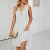 Women Fashion Casual Comfy Sexy Sleeveless Solid Color V-Neck Pocketed Short Sleeve Dress