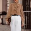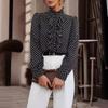 Spring Vintage Lace Ruffled Stand Collar Fashion Polka Dot Shirts Women Long Sleeve Slim Fit Elegant Casual Blouses Women Simple Chic Shirt Tops 26488