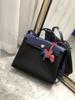 31cm Cowhide/waterproof Canvas+bag Genuine Leather Women's Bag+ New Contrasting Color Handbag Shoulder Bag