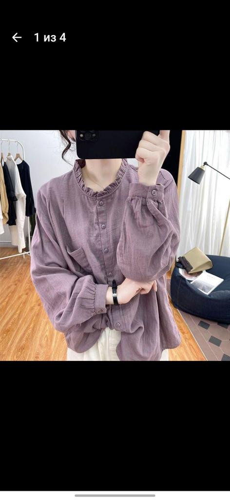 Women Pure Cotton Long Sleeved Shirt for Women Spring Autumn Loose Retro Top Pleated Base Shirt