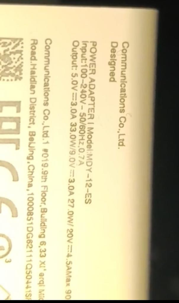 It's a fake, true power of this charger is only 33 w, don't buy it to avoid wasting of your time. The speed i am experiencing is correct—it is not a 90W charger. Here is the breakdown of why the label doesn't add up: 1. The "Input" Giveaway Look at the line `Input: 100-240V ~ 0.7A`. * An input of **0.7A** is the standard specification for **Xiaomi 33W** chargers (like the MDY-11-EZ). * For comparison, a genuine **90W** charger requires an input of about **2.0A** to pull enough power from the wall. * Mathematically, at the lower end of the voltage (100V), 0.7A can only provide about **70W** of raw power. Since chargers aren't 100% efficient, it's physically impossible for this device to output 90W. 2. Conflicting Output Specs The label lists multiple "Max" wattages, which is a major red flag for counterfeit hardware: * It says `11.0V = 3.0A Max 33.0W Max`. * Directly below that, it claims `20V = 4.5A Max 90.0W Max`. * Authentic chargers from Xiaomi usually only list the maximum capacity of that specific model. Seeing both 33W and 90W listed as "Max" on the same label indicates a fake "one-size-fits-all" sticker used by manufacturers to make cheap 33W chargers look more powerful. 3. Model Number Inconsistency The model **MDY-12-ES** is technically the model number for Xiaomi's **67W** charger. * A real MDY-12-ES would be rated for 67W, not 33W or 90W. * The fact that your charger has this model number but the internal specs of a 33W unit (0.7A input) confirms it is a counterfeit This charger is a **33W unit** disguised with a fake label. It will never reach 90W speeds because the internal components aren't designed to handle that much power.