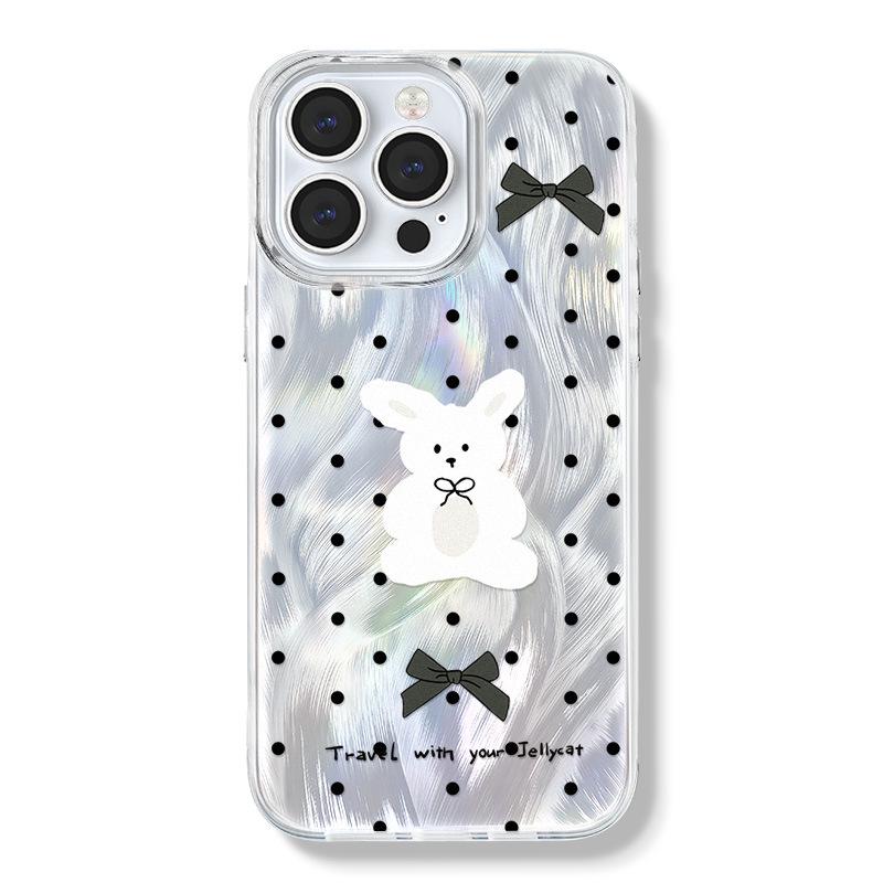Zhitai Transparent Feather Yarn Cartoon Case for iPhone 12-16, 13 Large Hole, 15 Pro Max