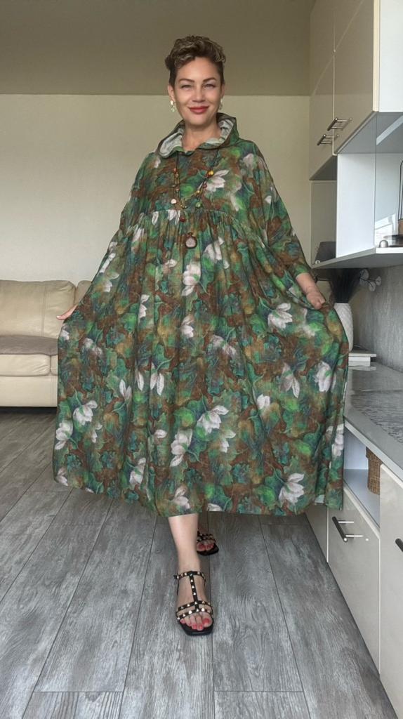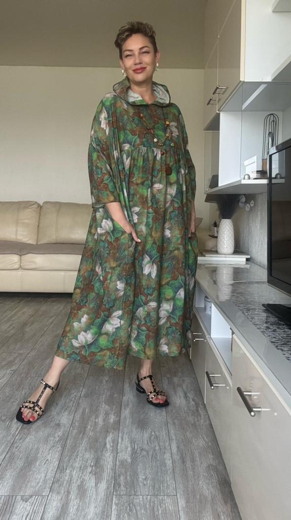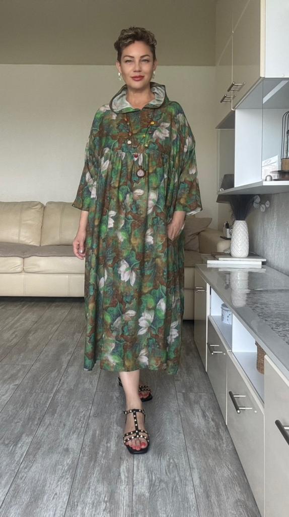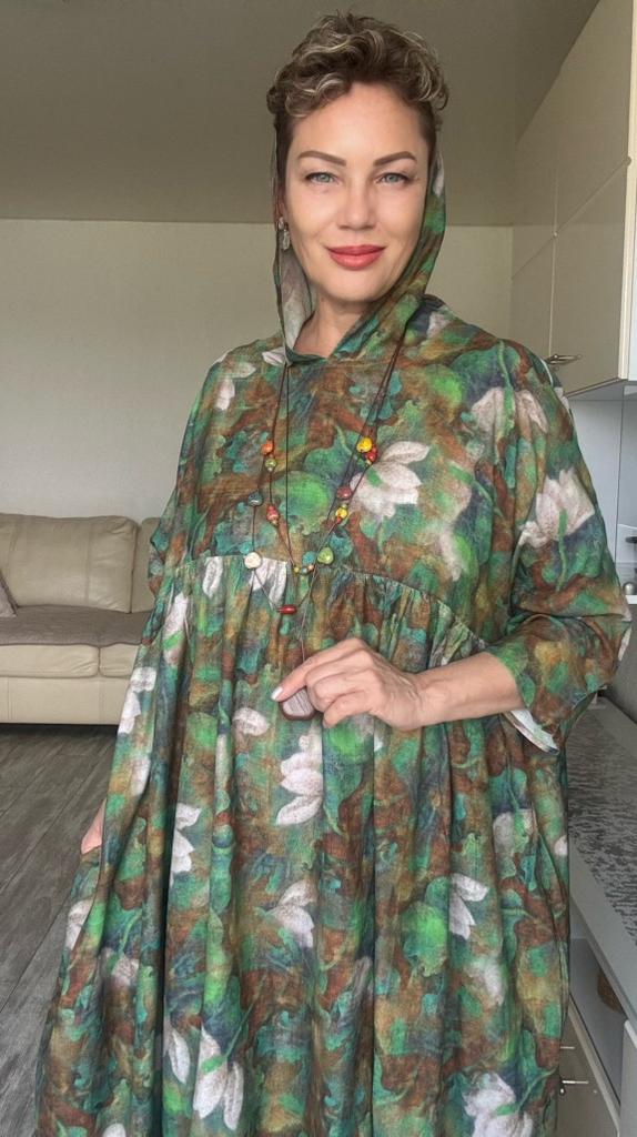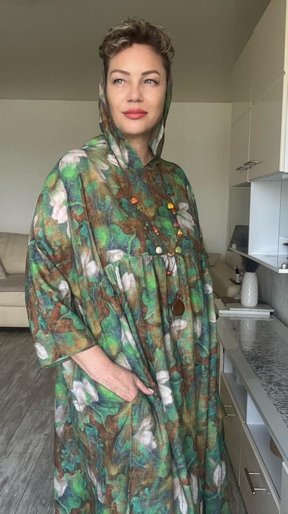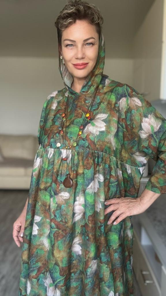 DIMANAF 2025 Plus Size Summer Women Basic Dress Vintage Floral Printing Casual Loose Hooded Long Dress Maxi