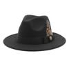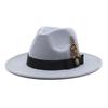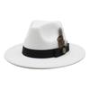 White Woolen Gentleman Classic British Jazz Feather Top Hat Wide Brim Party Church Wedding Fedora Hats Men Women Panama Felt Cap