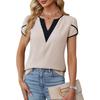 Women's Summer Fashion Color Matching V-neck Petals Short-sleeved Shirt Top