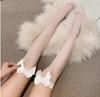 Huahu A8 Black Thigh-High Stockings with Bow and Wooden Ear Edge