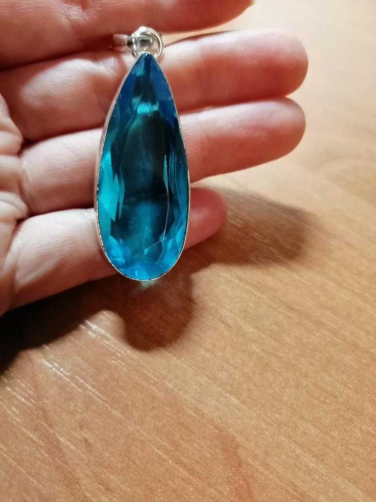 Natural Swiss Blue Topaz Gemstone 925 Sterling Silver Jewelry Pendant 2.52" U8K93