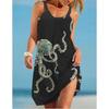 Summer New 3D Printed Suspender with Marine Creature Pattern Dress, Shawl Knee Length Bohemian Sexy Sand Dress