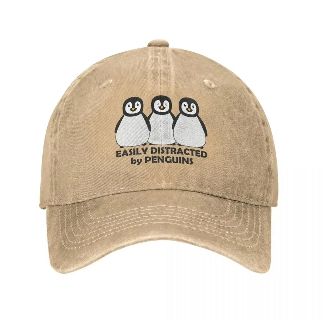 Easily Distracted by Penguins Cowboy Hat Fashionable Trucker Hats Outdoor All Seasons Travel Adjustable Cap Fit Women Men