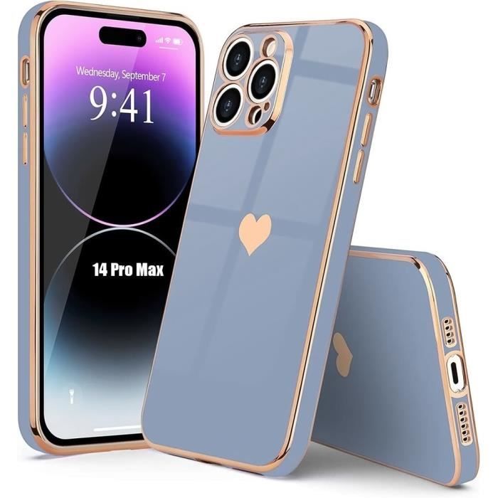 Coque - E.F.CONNECTION - pour iPhone 14 Pro Max - Silicone Hybride - Protection Antichoc - Motif Cœur Doré