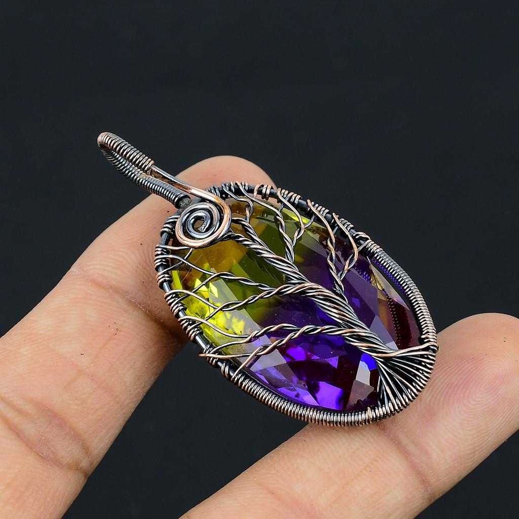 Bi Color Tourmaline Handmade Copper Wire Wrap Jewely Pendant 2.2" C4F55
