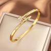 Micro Inlaid Zircon Colored Gold Copper Zircon Nail Bracelet with Adjustable Street Opening