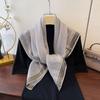 New Imitation Silk Square Scarf Travel Air-conditioned Room Fashionable Neck Protection Accessories Pinstripe Silver Silk Shawl Versatile Square Scarf