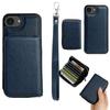 For iPhone 16e Case Detachable Zipper Card Bag PU TPU Kickstand Phone Case with Strap