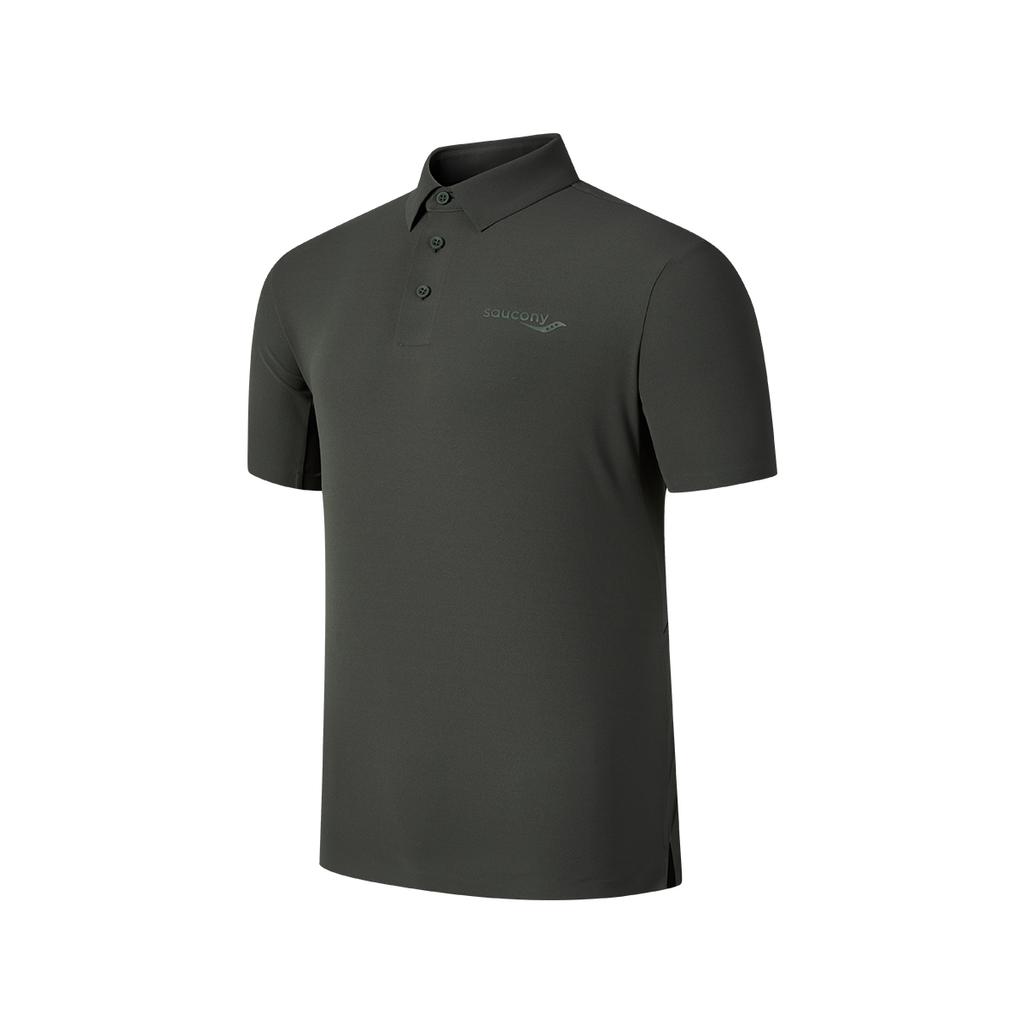 SAUCONY Letter Logo Urban Soft Short Sleeve Polo Shirt Men Polo Shirts Rock-Gray Military-Green SC2240075A-GE128