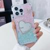 For iPhone 16 Pro Case with Heart Mirror Epoxy Glitter TPU+Acrylic Phone Back Cover