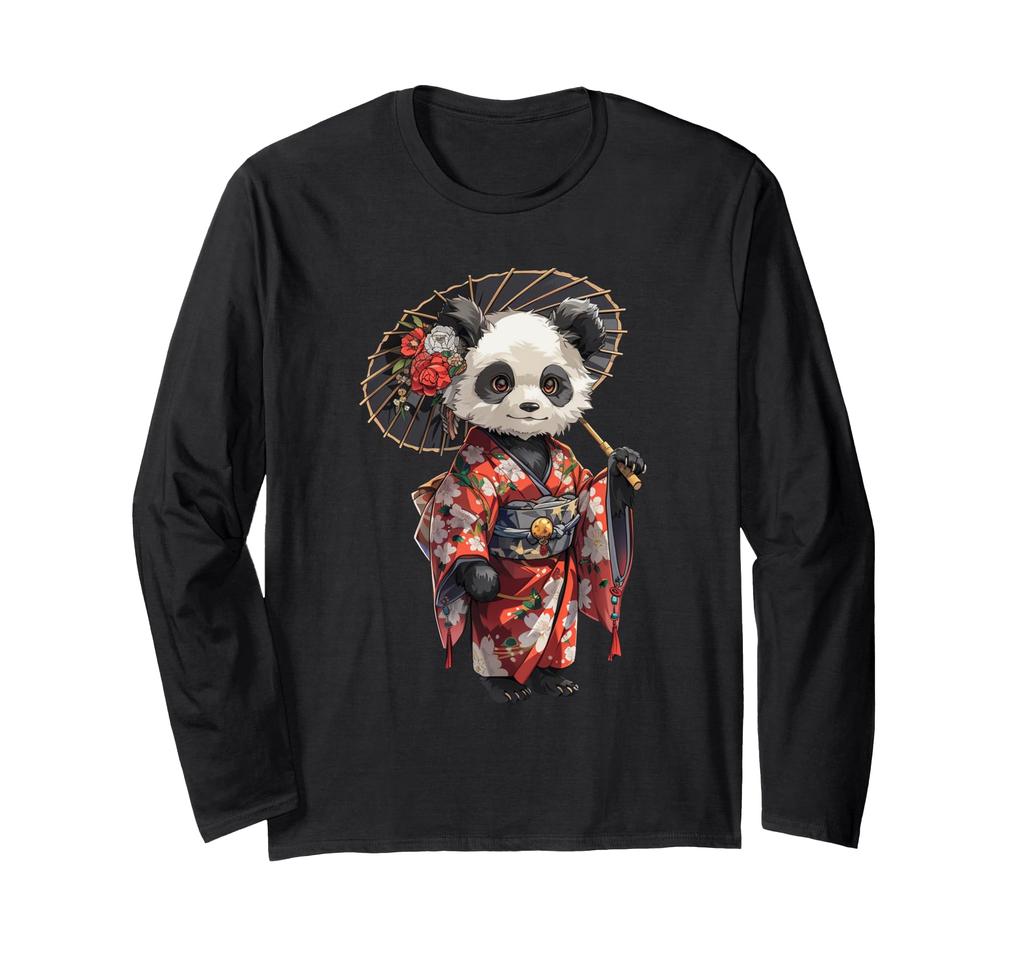 Panda Japanese Geisha Umbrella Panda Bear Japanese Long Sleeve - T-Shirt