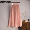 IHUASU Women's Fashion Casual Solid Color Print Summer Spring Skirt