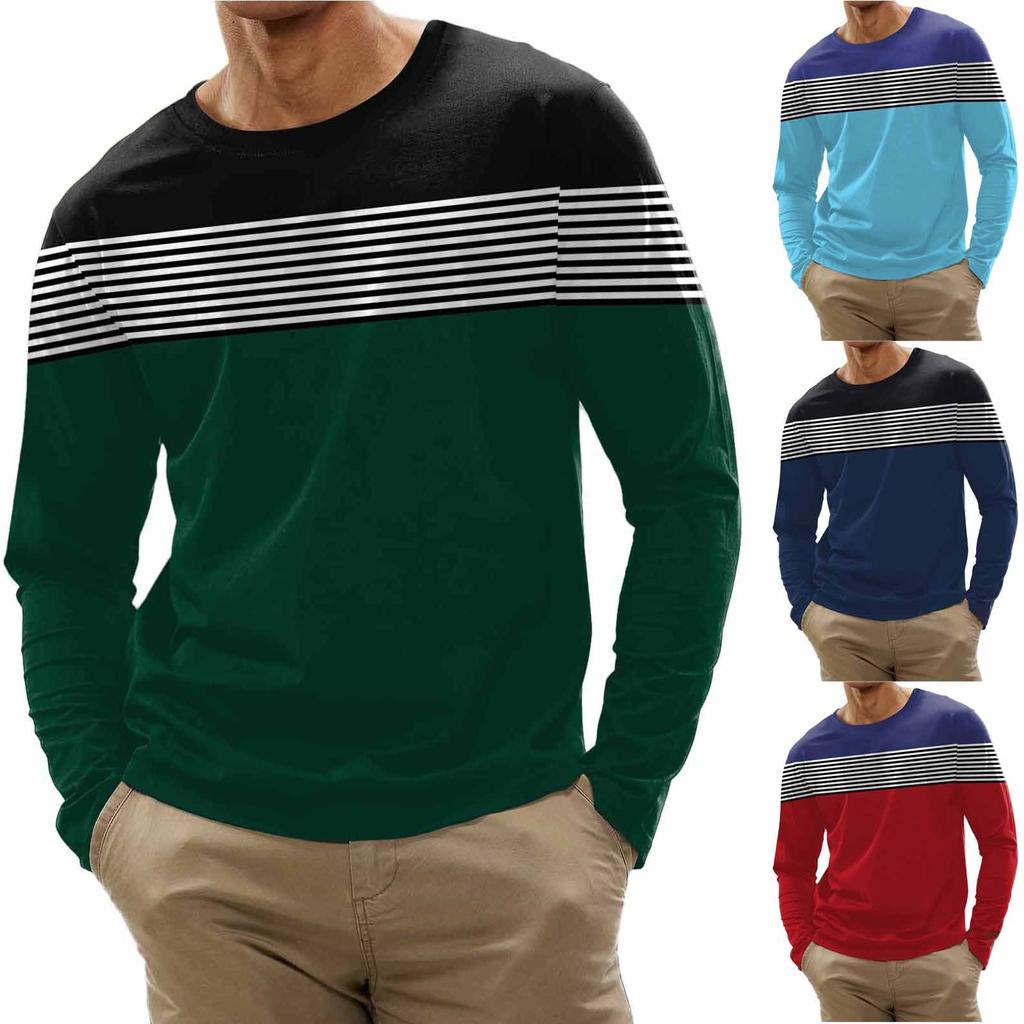 Men's Fashion Casual Stripe Printed Long Sleeve O-Neck Shirts Tops Blouse