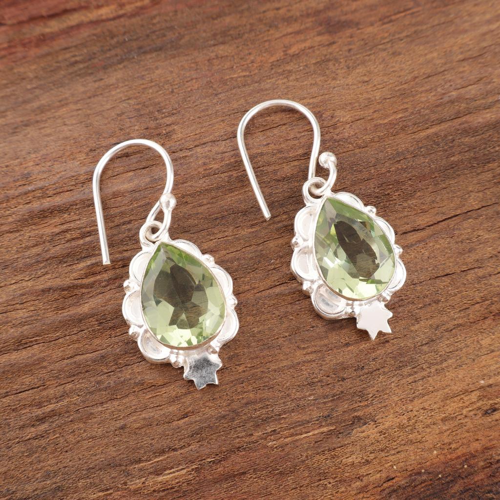 Green Amethyst Gemstone Jewelry, Handmade Silver Earrings, 925 Solid Sterling Silver Earrings, Beautiful For Thanksgiving Gift