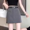 Women's Gray High-Waisted A-Line Mini Skirt - 2024 Spring Collection, Academy Style, Anti-Exposure Design