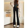Women's 2024 High-Waist Black Velvet Flared Jeans for Winter - Slimming Fit