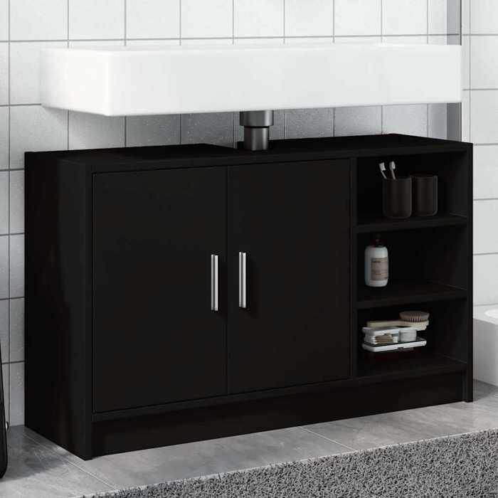 VidaXL Black Sink Cabinet 90x29x55 Cm Engineered Wood, Bathroom Cabinet, Bathroom Storage Cabinet, 848123