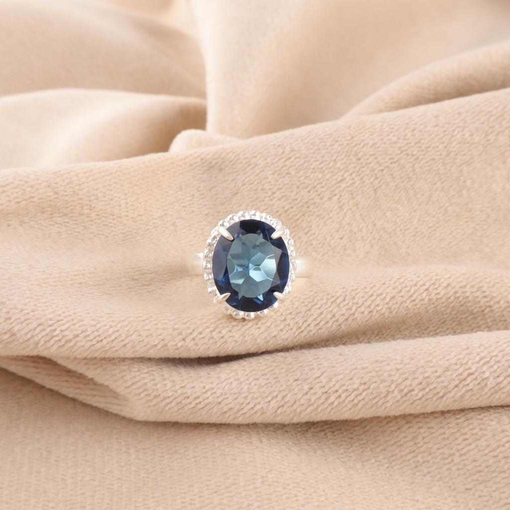 Oval London Blue Topaz Gemstone 925 Silver Promise Engagement Full Eternity Ring RR-28-6