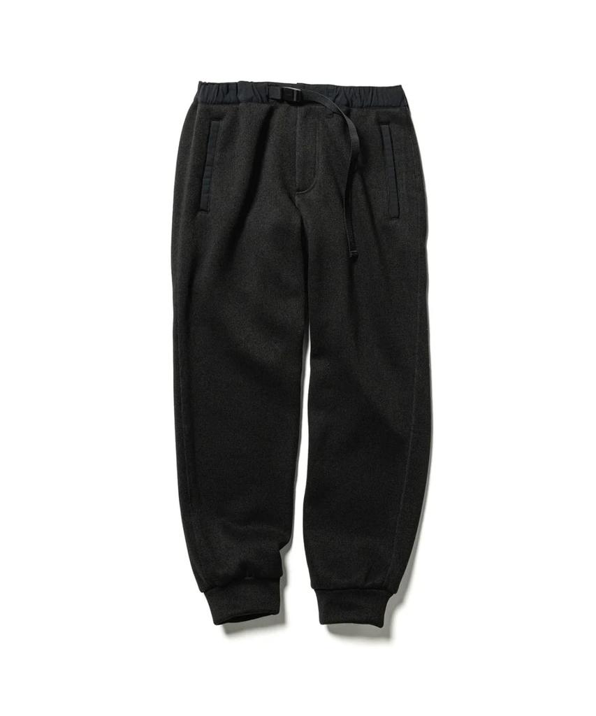 It has excellent heat retention and breathability, and is always comfortable to wear. The outside has a clean appearance with no pilling, and the inside is brushed like fleece and has a soft texture. The weaving belt at the waist makes it easy to adjust the size. It can be worn by people of various body types. The NANGA logo is placed on the right back pocket.