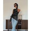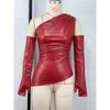 Women's Clothing Sexy Slanted Collar Off-Shoulder Irregular PU Leather Vest Women's Top Sleeve Cover