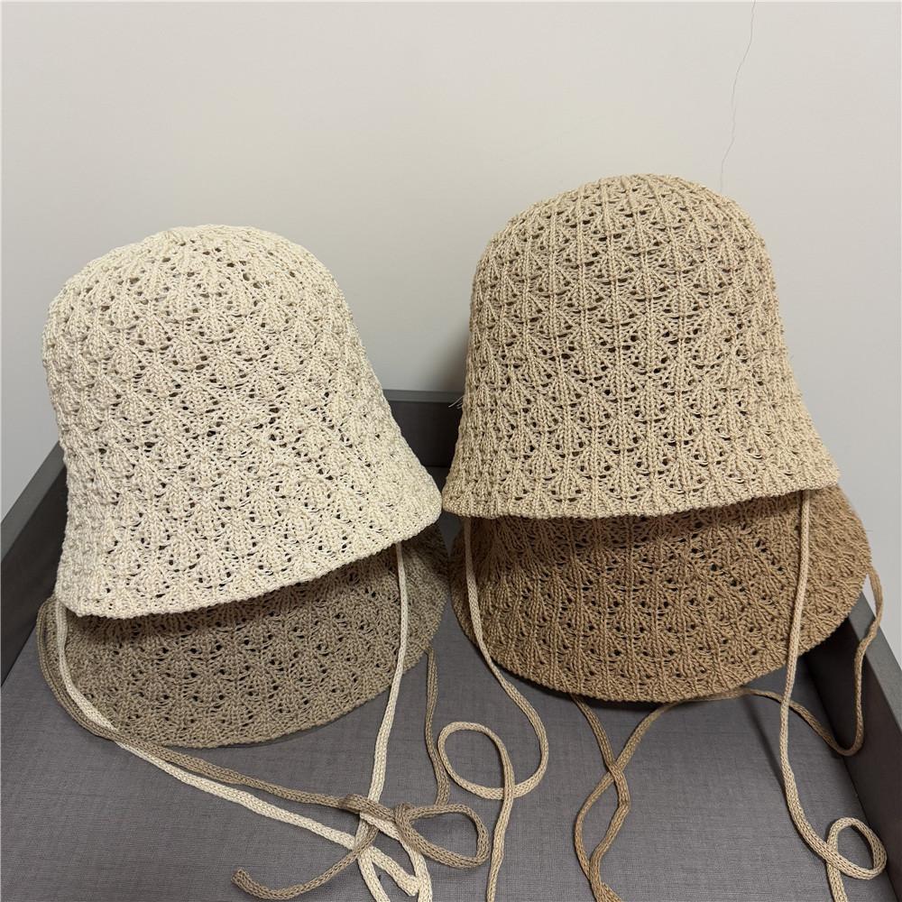 Thin Hollow Breathable Bucket Hat Women's Spring and Summer Face Small Versatile Lace-up Travel Sunshade Bucket Hat