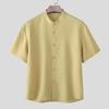 INCERUN Men Collarless Short Sleeve Button Down Casual Loose Shirts Tops