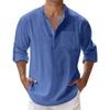 Men'S Fashion Stand Up Collar Solid Color Shirt Casual Long Sleeved Top