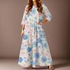 Women's Casual Fashion Floral Print Three-quarter Sleeve Long Dress With Pockets