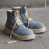 Breathable Men's Casual Boots Fashion Denim Cloth Short Boots Retro Work Boots Platform Men Ankle Boots Handmade High Top Shoes