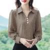 Female Clothing Commute Striped Shirt Casual Loose Fashion Turn-down Collar Chic Button Spring Summer 3/4 Sleeve Loose Blouse