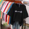 Short-sleeved T-shirt, Loose-fitting, Slimming Printed V-neck Top for Women