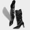 New Arrivals Pleated Patent Leather Knee High Boots Women Sexy Pointed Toe Runway Shoes Autumn Winter Stiletto Heels Pumps