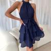 Ladies Casual Fashion Sexy Solid Color Belted Comfortable and Cool Round Neck Dress