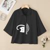 ZANZEA Women Turn Down Collar Loose Casual Short Sleeve Print Blouse