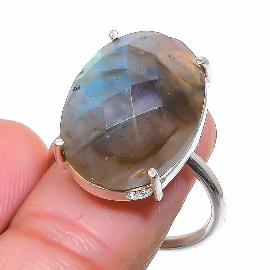 Labradorite Gemstone 925 Sterling Silver Jewelry Ring Size Adjustable GK-6036