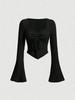 Long Sleeve Crop Top Phumee Sweetheart Neck Flared Sleeves Rib-knit A1933