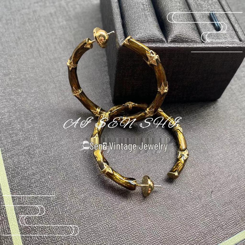 Vintage Bamboo Clip-On Hoop Stud Earrings: Retro, Sweet, Spicy Style