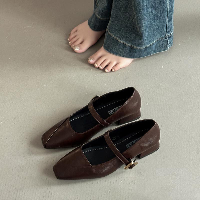 One-word Buckle Thick Heel Light Mouth Retro Temperament with Skirt Mary Jane Shoes Summer Temperament Square Head Single Shoes Women's Shoes