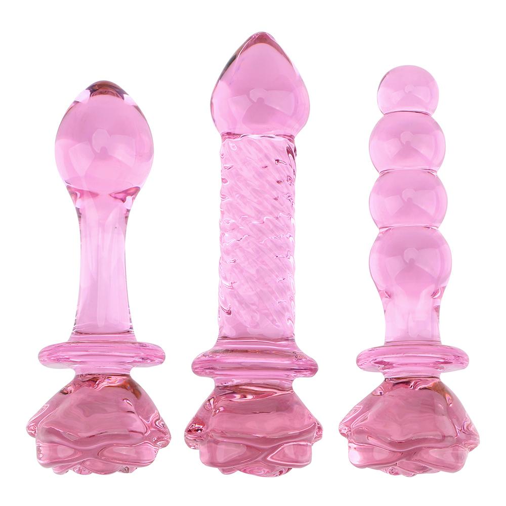 Glass Rose Decorative 22-35mm Anal Beads Butt Plug for Women Vaginal Dilator Female Masturbator Sex Toys Men Prostate Massager