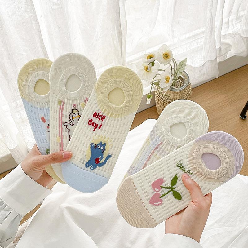Women's Summer Thin New Cartoon Preppy Style Shallow Mouth Invisible Mesh Hollow Non Slip Socks