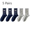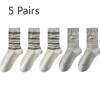 5 Pairs of Women's Casual Versatile Fabric Pinstripe Preppy Sports Tube Stack Socks