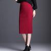 High-End Women's Autumn Winter Thickened Knitted Midi Skirt Slit Bodycon Pencil Skirt Slim-Fitting Wool Skirt