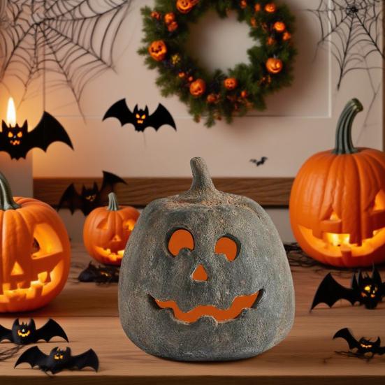 Hollow Pumpkin Ornament Halloween Jack O' Lantern Fall Decor Farmhouse Table Centerpiece for Home Festival Porch Mantel Room Decoration