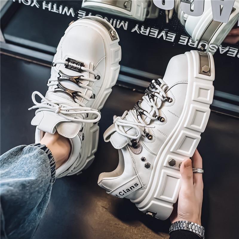 Men's Shoes Platform Heightening Leisure Sports Muffin Board Shoes Spring and Autumn Teenagers Personality Heavy Metal Large Size Trendy Shoes